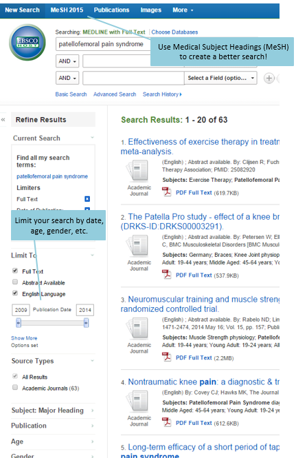 Full-text, peer-reviewed academic nursing, medical and health-related articles, MeSH subject headings and Evidence Based Care Sheets.